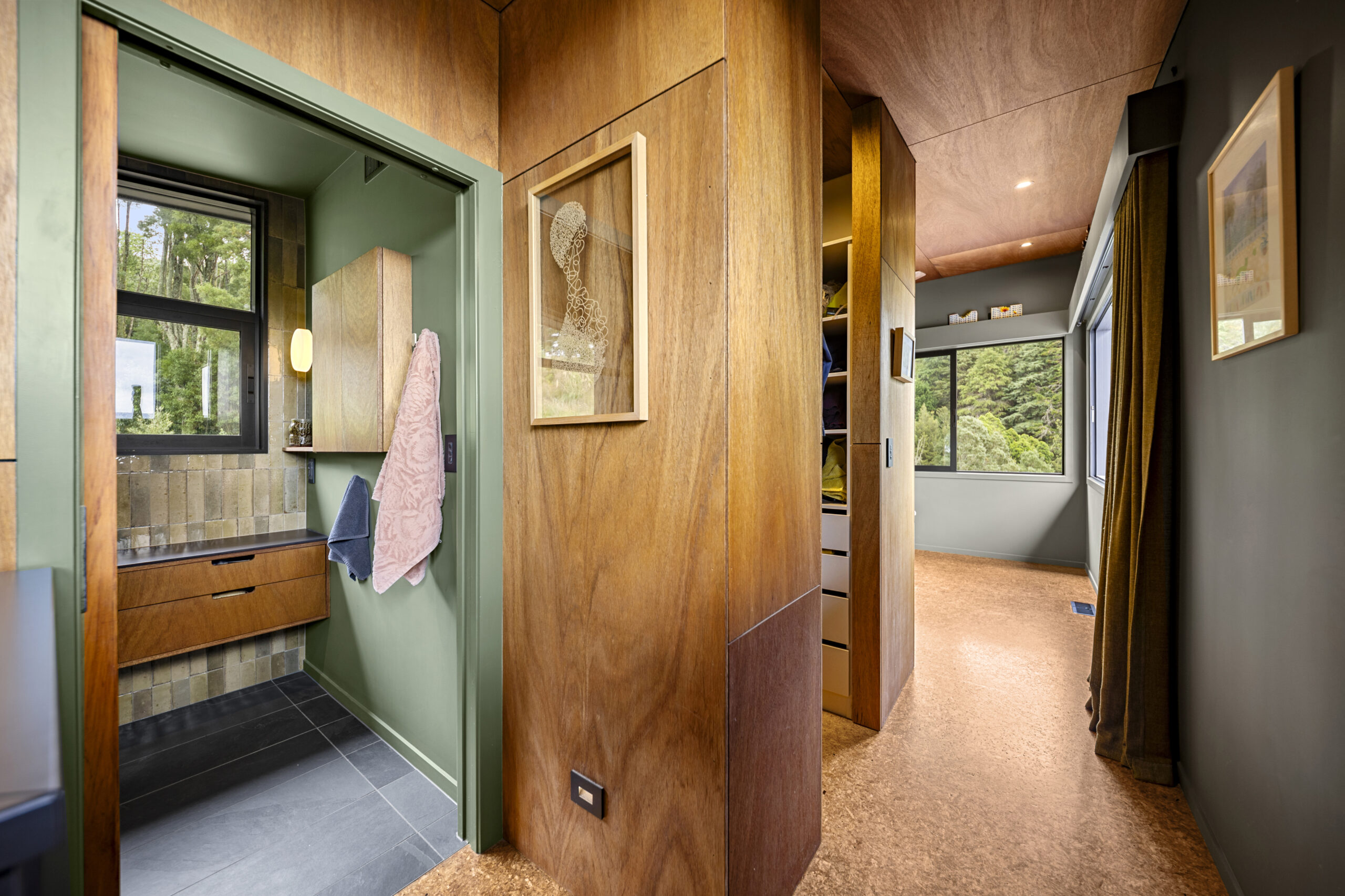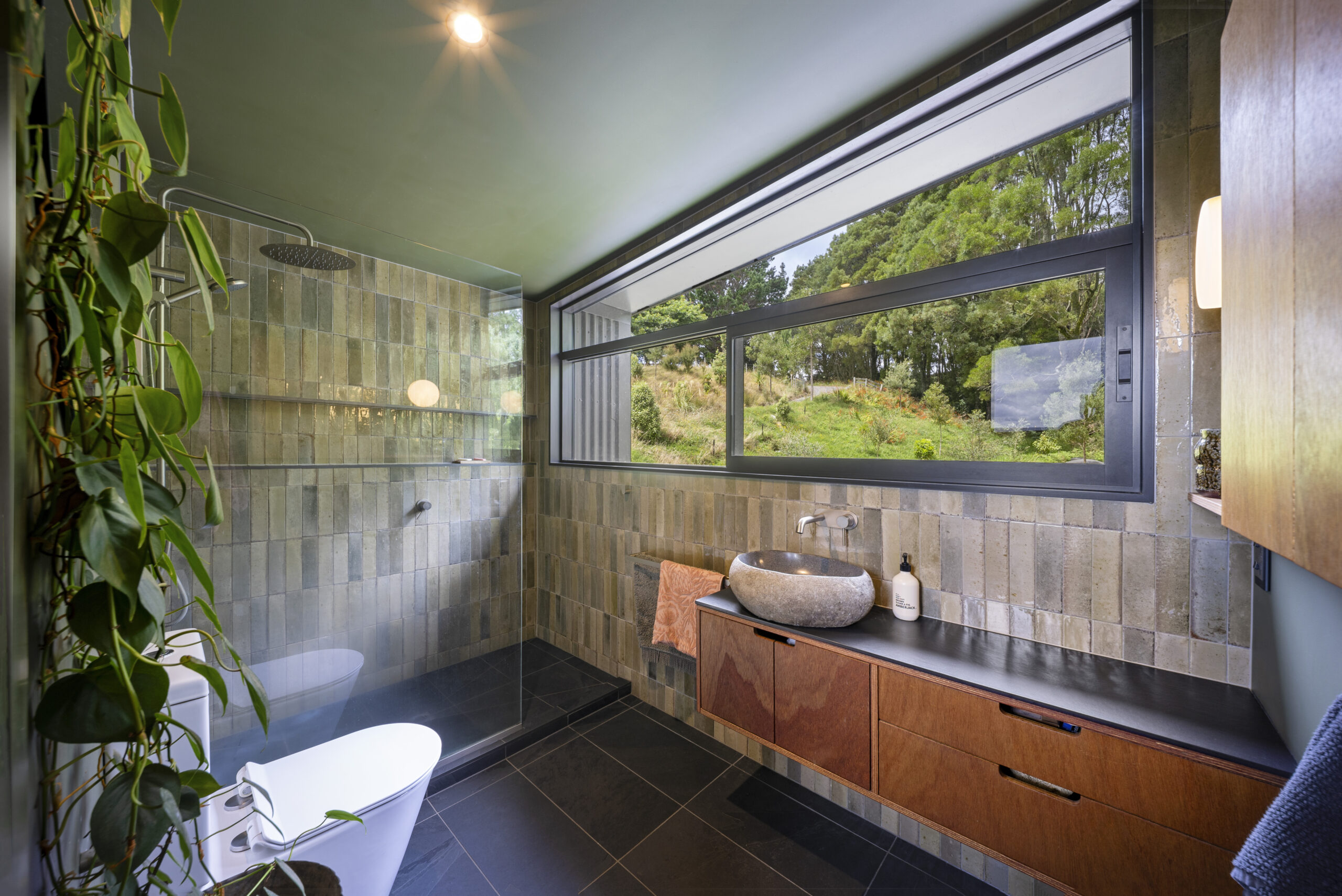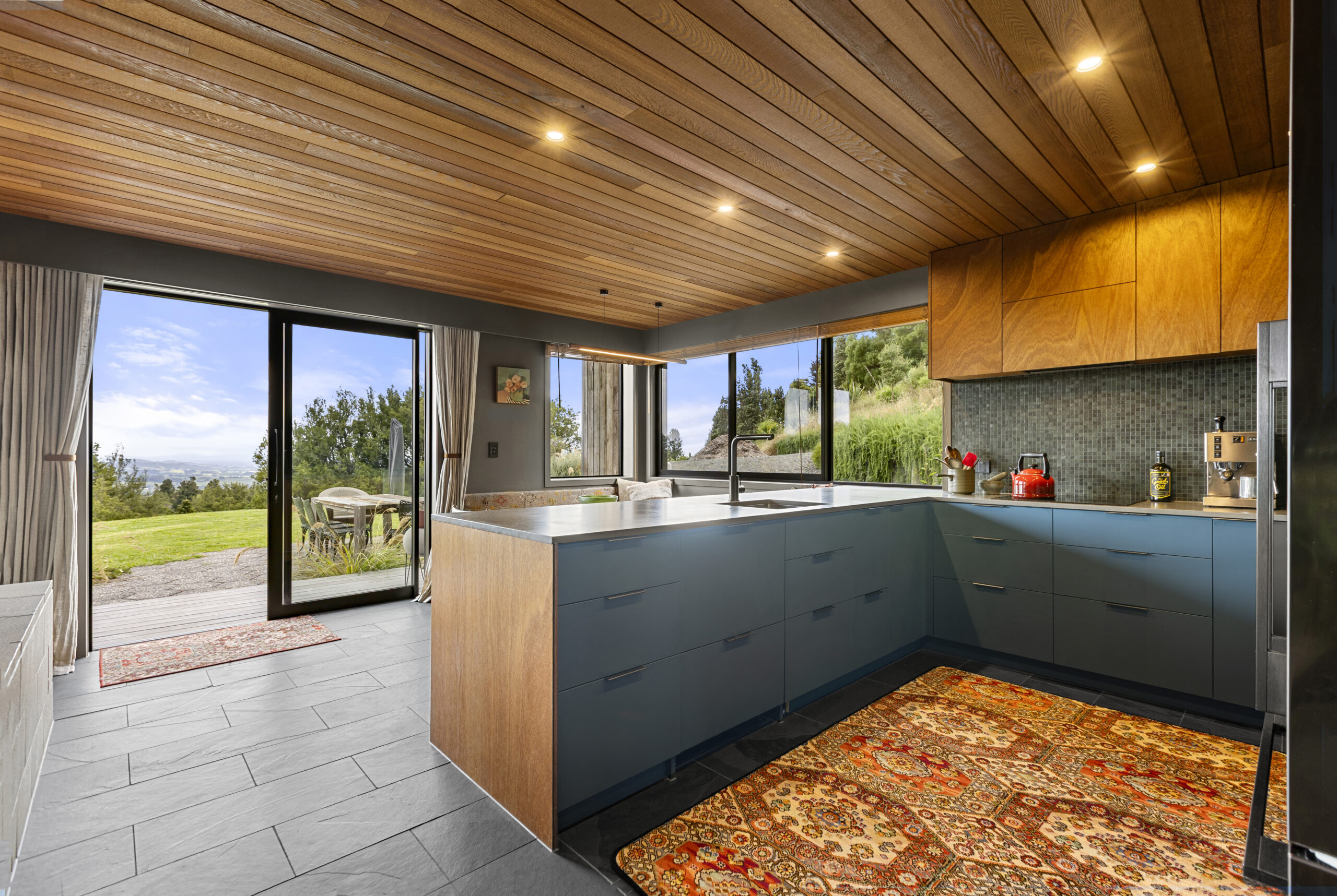Veronica our client, a landscape architect, brought incredible passion to the project. She carefully researched and selected products to suit her vision, from OSB flooring and Australian hardwood decking and cladding, to the tongue-and-groove cedar ceiling flowing through the open-plan living spaces not to mention the plywood linings with bold negative detail.