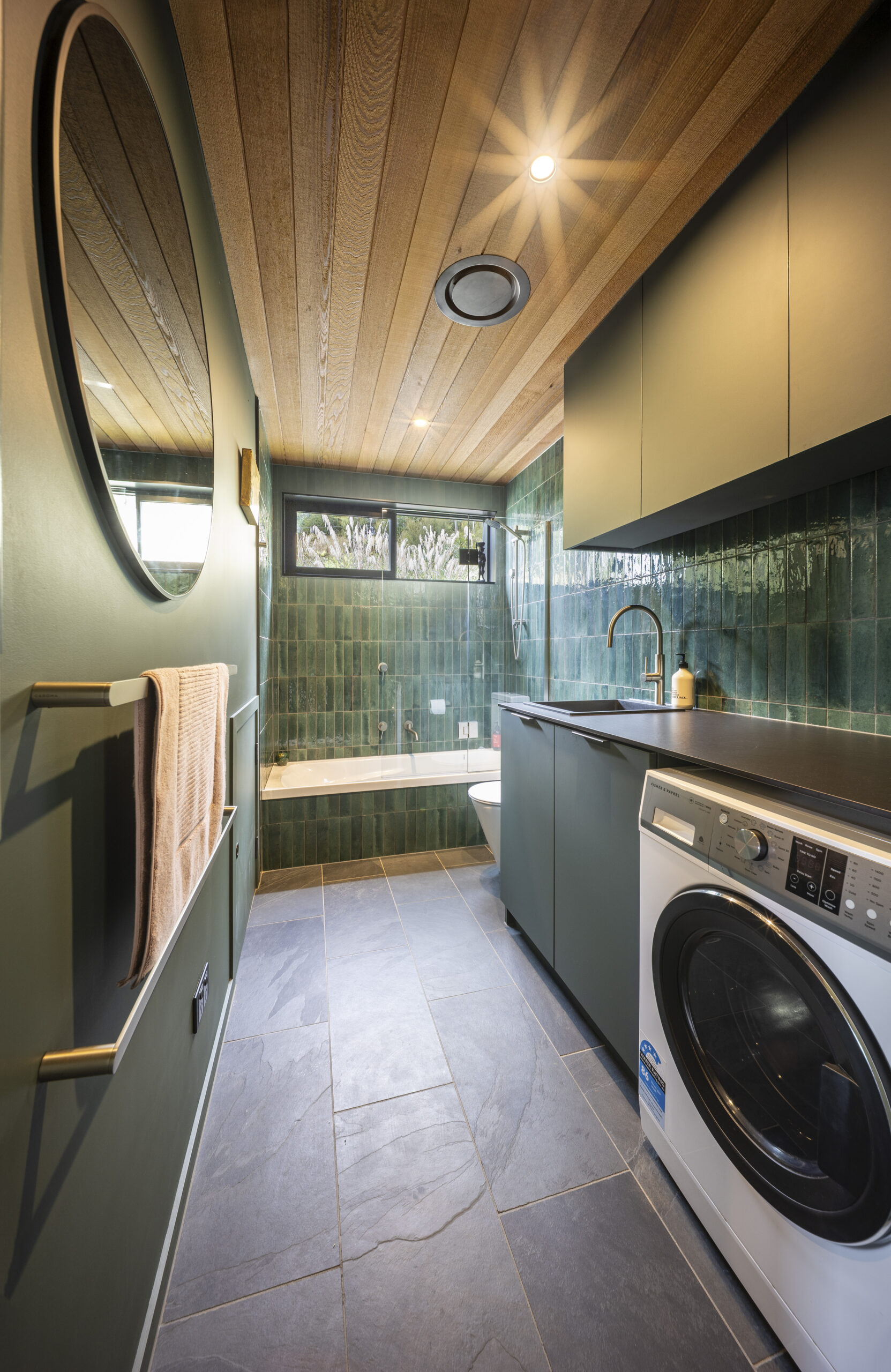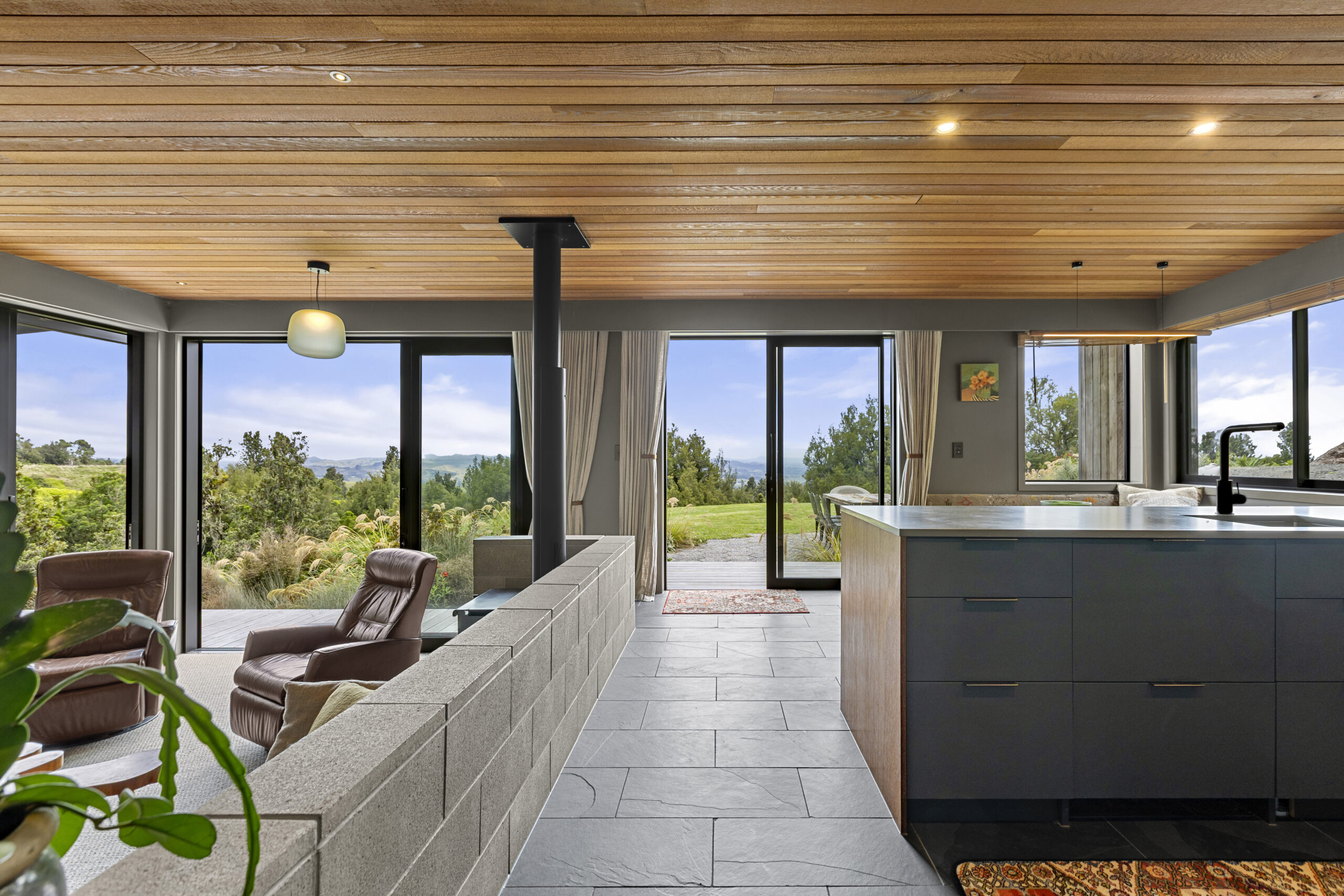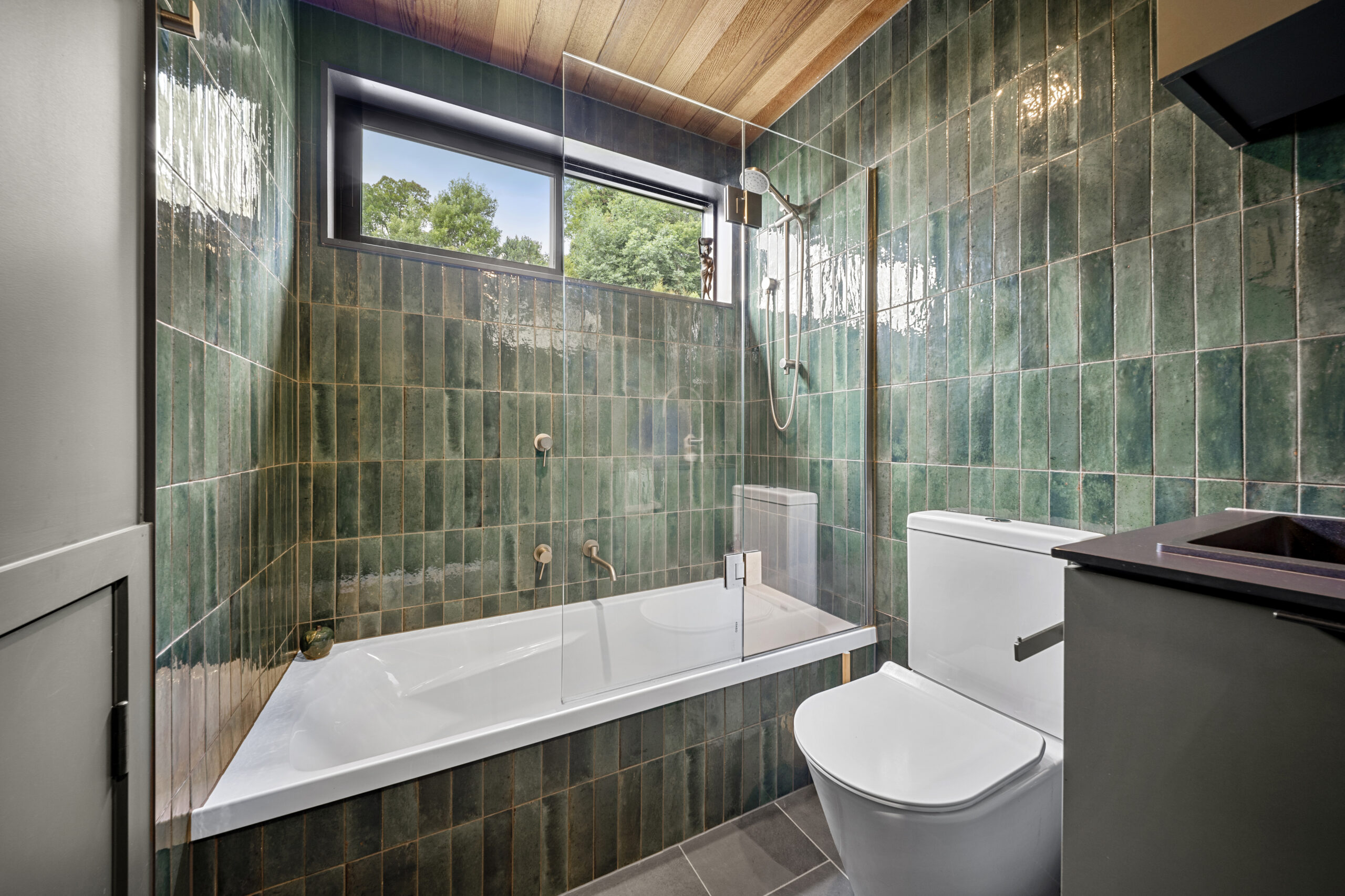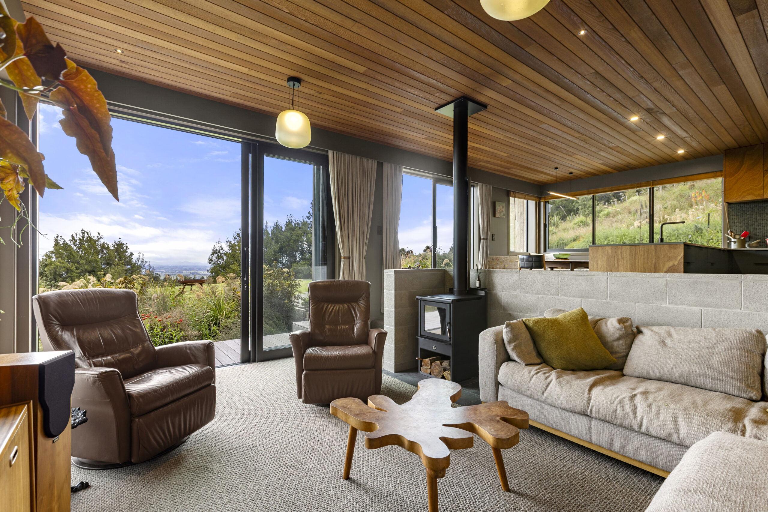 Veronica our client, a landscape architect, brought incredible passion to the project. She carefully researched and selected products to suit her vision, from OSB flooring and Australian hardwood decking and cladding, to the tongue-and-groove cedar ceiling flowing through the open-plan living spaces not to mention the plywood linings with bold negative detail.